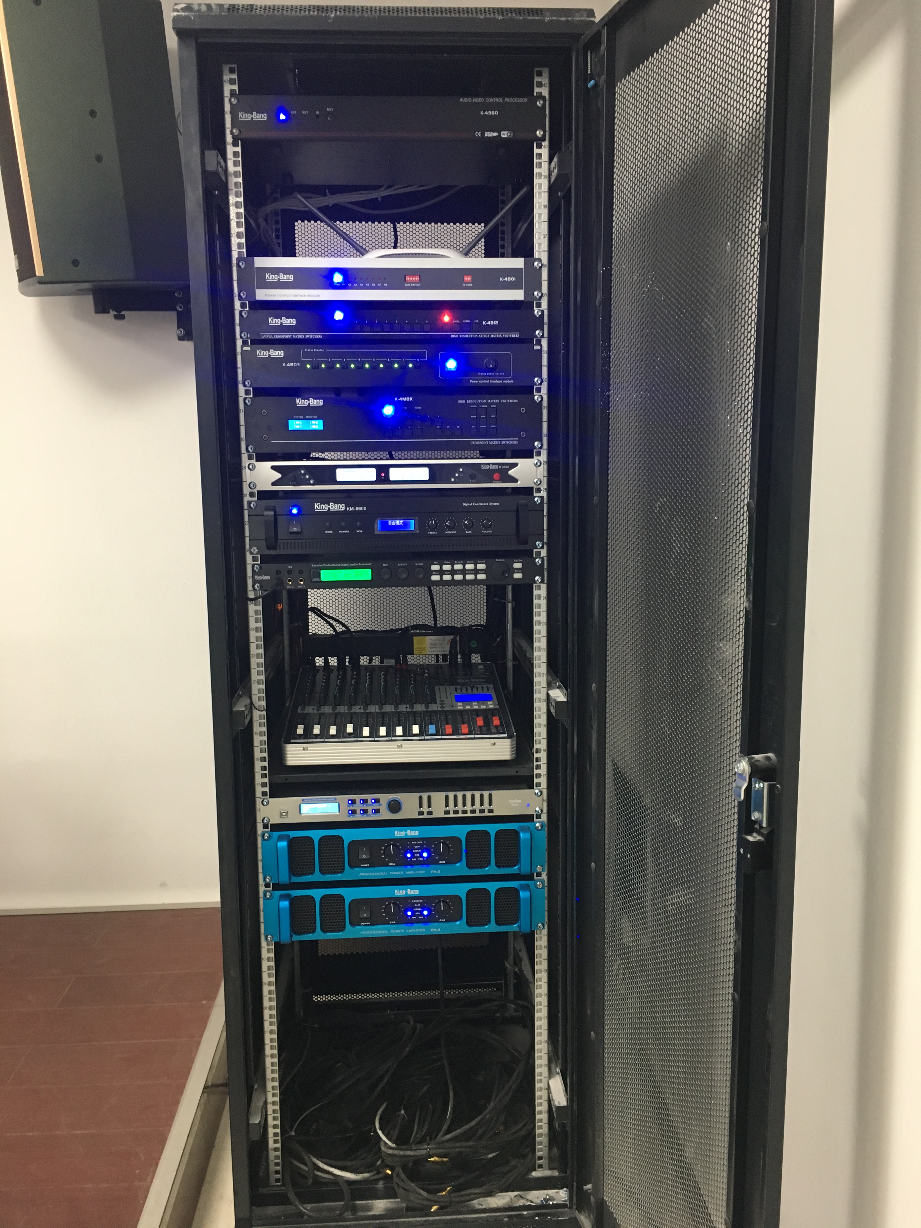 雙通道專業(yè)功放(PA-4)、10路調(diào)音臺(M10RUD)、專業(yè)數(shù)碼HI房卡拉OK前級(X5)、音箱處理器(DP26),專業(yè)音箱(KB-12)等。